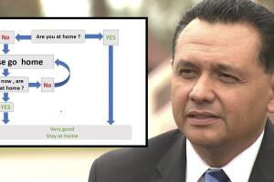 HOUSTON, Texas. – El sheriff del condado Harris, Ed González, explica a través de una gráfica el significado de la orden de quedarse en casa que fue emitida por la juez Lina Hidalgo.