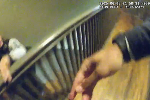 Ella permanece en el piso. La grabación de las cámaras corporales de ella terminan en ese punto.