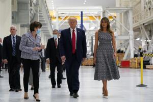 - article1 Min ReadMay 27, 2020 05:44 PMTrump recorrió parte del Centro Espacial Kennedy poco después de su llegada a la costa de Florida y ofreció buenos deseos a los astronautas, que ya estaban en el cohete.