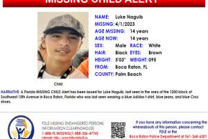 En caso de tener algún dato de Luke Naguib, favor de contactar con el Departamento de Policía de Boca Ratón llamando al 561-368-6201 o al 911.