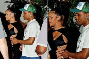Lejos de los dimes y diretes de Internet, la pareja se vio más unida que nunca cuando salieron a cenar. Rihanna paseó con su novio enfundada en un mini vestido negro, con el que mostró su embarazo de 8 meses.