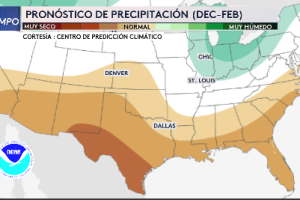Desde diciembre hasta febrero del 2023, la Oficina Nacional de Administracion Oceánica y Atmosférica (NOAA por sus siglas en ingles) predice actividad de lluvia por debajo del promedio al sur del país incluyendo toda Florida y más lluvioso que el promedio para el Valle de Ohio, Los Grandes Lagos y el noroeste del país.