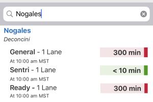 En la aplicación que tiene Aduanas y Protección Fronteriza (CBP) Wait Times para informar del tiempo de espera en los puertos de entrada de Canadá y México reporta que en las garitas de Nogales la espera es de 300 minutos y sale en rojo.