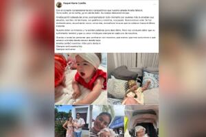 Al amanecer del lunes, su madre publicó en Facebook el siguiente mensaje: "Con el corazón completamente roto compartimos que nuestra amada Amelia falleció.Ya no sufre, ya no lucha, ya no siente dolor. Su cuerpo descansó en paz. Amelia partió rodeada de amor, acompañada en todo momento por quienes más la amaban: sus abuelos, sus tíos, mi hermana, sus padrinos y nosotros, sus papás. Nunca estuvo sola. Se fue sintiendo amor, escuchando voces conocidas, envuelta en brazos que la cuidaron hasta el último instante".