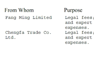 El 6 de enero de 2020, la firma de abogados recibió 49,848 dólares y tres días después 3 millones de dólares de las empresas de Hong Kong. Una de ellas, Chengfa Trade, fue incorporada en octubre de 2018 y la otra, Fang Ming Limited, en diciembre de 2016. No hay datos de sus socios o representantes en las bases de datos públicas.