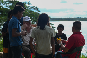 En el atardecer del tres de octubre cuando preparábamos las cámaras para una entrevista frente al río Guaviare con Gustavo Enrique Ricardo, un misionero cristiano que convivió 10 años con los Jiw para aprender su idioma, un grupo de tres niños y una niña se acercó a saludar a Ricardo.