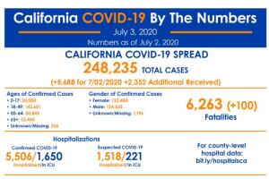 Cifras oficiales del Departamento de Salud Pública de California (CPHD), al jueves 2 de julio indicaban 5,506 hospitalizaciones y 1,650 personas en unidades de cuidados intensivos.