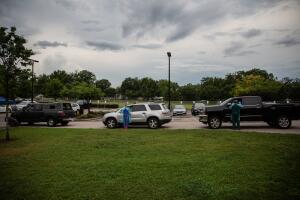 De vuelta al centro de pruebas de covid-19 en Holton, la lluvia aumentó a medida que se acercaba la noche. Cuando Martínez-Bianchi examinó a uno de los últimos pacientes en la fila, este le dio un paraguas, y le agradeció en español antes de irse.