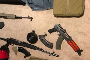 Entre lo que recuperaron, se observan rifles semi automáticos, pistolas y cartuchos de alta capacidad, entre otros artículos.