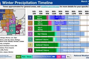 Para Illinois e Indiana, entre ellos Kankakee y las ciudadades Gary y Rensselaer, se prevén ráfagas de hasta 65 millas por hora, con posibilidad de tornados débiles (0) hasta las 9:00 de la noche del domingo, acompañados de vientos provenientes del norte.