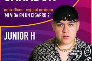 Junior H se lleva el premio Mejor Álbum- Regional Mexicano por 'Mi vida en un cigarro 2'. ¡Muchas felicidades!