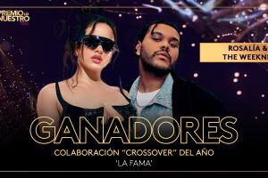 El esperado premio Colaboración “Crossover” Del Año es para Rosalía y The Weeknd por su canción ‘La Fama’. ¡Todo mundo a cantar con este gran tema!