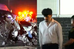 - video1:36August 07, 2025 06:42 AMEl Departamento de Policía de Houston confirmó que no se reportaron heridos durante el accidente. Además, se reveló que el conductor del Nissan, que iba en sentido contrario, fue arrestado en la escena.
