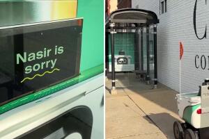 - article2 Min ReadApril 16, 2026 10:23 AMNasir”, el robot de reparto que chocó contra una parada de autobús en West Town, Chicago, ahora “pide disculpas” a los vecinos a través de un anuncio colocado en el mismo lugar del incidente.