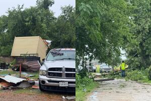 - gallery0 ImagesJune 12, 2025 01:43 PMEl Departamento de Gestión de Emergencias del condado de Wharton, en Houston, reportó que al menos 10 estructuras resultaron afectadas. Dos casas perdieron completamente sus techos.