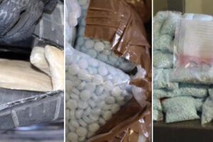 - gallery0 ImagesNovember 21, 2022 03:22 PMTres cargamentos de droga durante el fin de semana resultaron en la incautación de un total de más de medio millón de pastillas de fentanilo, 12.35 libras de polvo de fentanilo y 9.8 libras de cocaína.