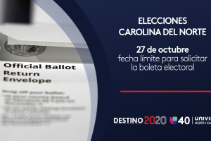 - gallery0 ImagesSeptember 09, 2020 03:53 PMSi usted desea votar por correo en las elecciones del 3 de noviembre, tiene hasta el 27 de octubre para hacer la solicitud. Le explicamos cómo obtener la boleta electoral en Carolina del Norte.