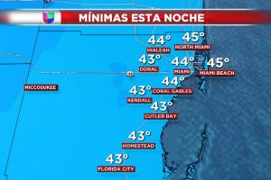 - article1 Min ReadJanuary 22, 2020 05:26 AMLas temperaturas no superarán los 60 grados Fahrenheit, después que este miércoles en la mañana se registró un frío histórico que dejó una sensación de frío de 29 grados Fahrenheit (-1 grado centígrados ) en Kendall y 30 grados en otras áreas de Miami.