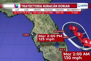 - article1 Min ReadSeptember 02, 2019 06:26 PMSegún el último boletín del Centro Nacional de Huracanes, Dorian se mantiene estacionario en las Bahamas, con vientos de 145 mph.