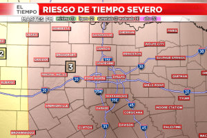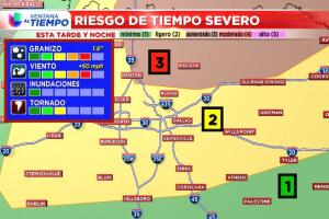 - article1 Min ReadApril 27, 2020 01:00 PMEl Centro de Predicción de Tormentas de los Estados Unidos posiciona la mayor parte del Norte de Texas, en el nivel 3 (aumentado) de Tiempo Severo, en la escala de 1-5.