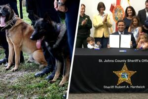 - article1 Min ReadJune 18, 2021 03:37 PMEl gobernador de Florida, Ron DeSantis, firmó la ley que permite que los perros policía o K-9, reciban atención de rescatistas y puedan ser transportados en ambulancias, cuando son heridos cumpliendo su deber.