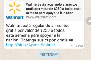 These two links claim to be coupons that provide $250 worth of credit to Amazon and Walmart. The companies are providing the credit due to the national crisis, according to the messages. Documented reached out to both of the companies, who denied that these are real promotions. Most likely, the people who created both links are using the posts as bait to collect email addresses, banking details or other information to commit identity fraud or steal money from strangers. These types of schemes are common, during moments of national crisis and otherwise.